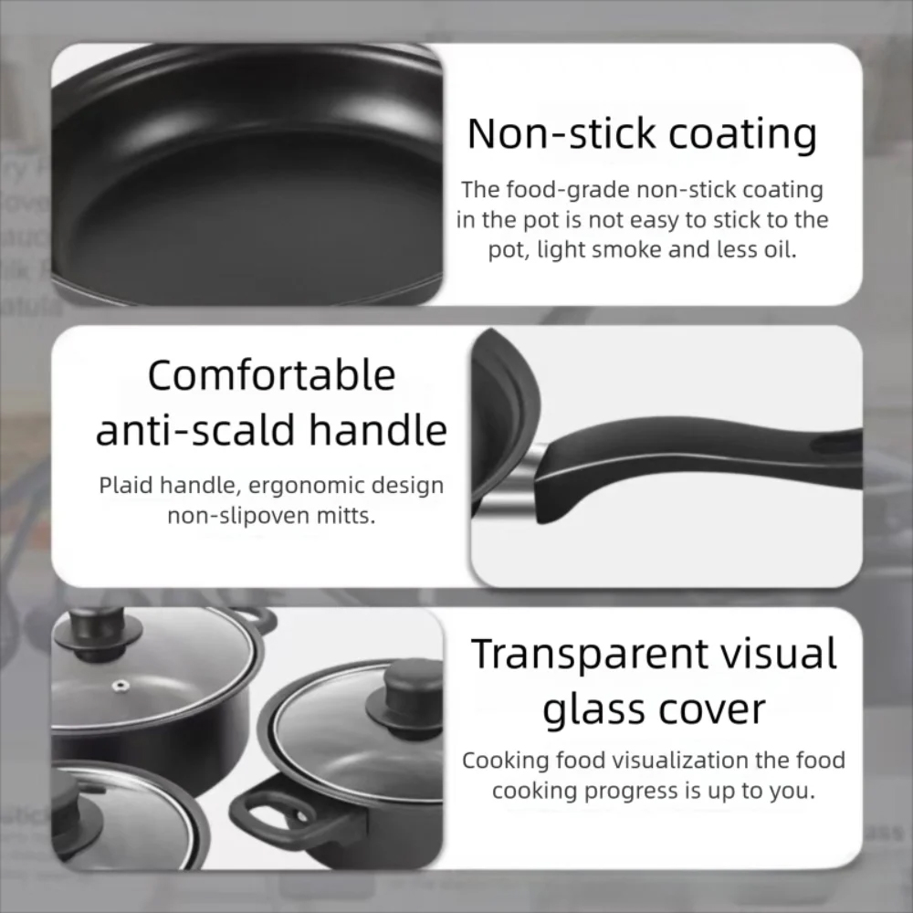 The 13pcs Cookware Set is a complete kitchen solution designed for modern home chefs. This comprehensive set includes a variety of pots, pans, and lids, all crafted with durable materials and advanced non-stick coatings to deliver effortless cooking and easy cleanup. Ideal for everyday meals, family cooking, or entertaining guests, this set combines functionality, style, and safety in one elegant package.