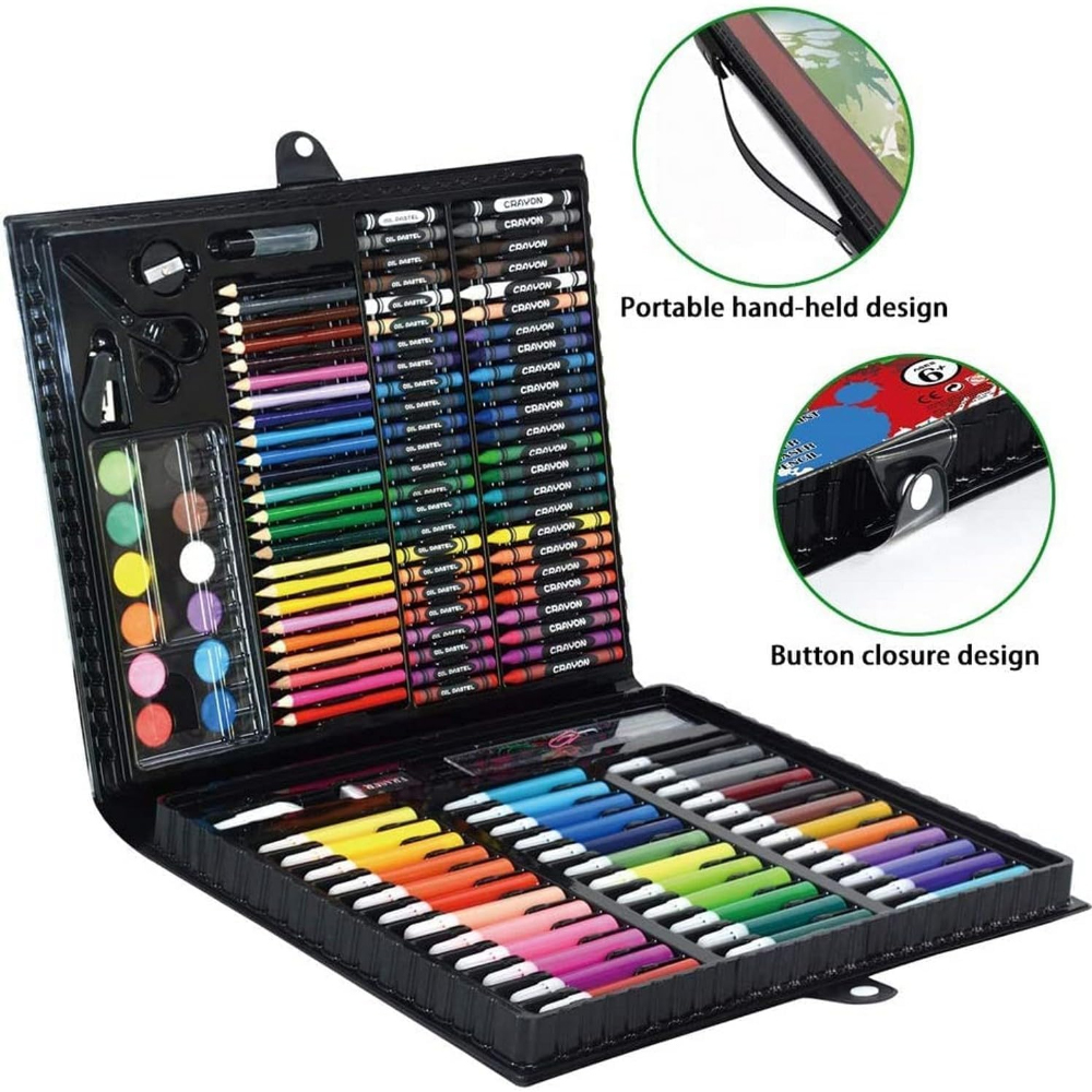 The 150Pcs Art Set is a comprehensive and colorful collection of high-quality art supplies designed to inspire creativity in children, students, and young artists. Packed with a wide variety of drawing and coloring tools, this all-in-one kit includes colored pencils, markers, crayons, watercolors, brushes, and essential accessories—all neatly organized in a durable, portable case. Perfect for school projects, home crafting, travel, or as a gift, it’s everything needed for endless artistic fun.