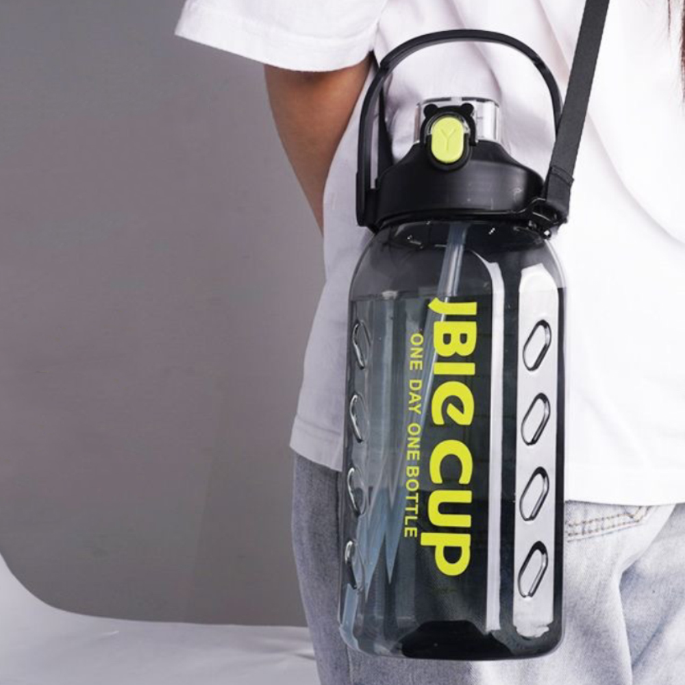 The 2.2L JBig Cup Water Bottle is a large-capacity, motivational hydration companion designed for active individuals who need to stay hydrated throughout the day. Featuring a clear, BPA-free Tritan™ body with bold time-marked labels and the inspiring phrase “ONE DAY ONE BOTTLE,” this bottle encourages consistent drinking to meet daily water intake goals. With its ergonomic handle, leak-proof lid, and convenient carry strap, it’s perfect for gym sessions, outdoor adventures, or busy workdays.