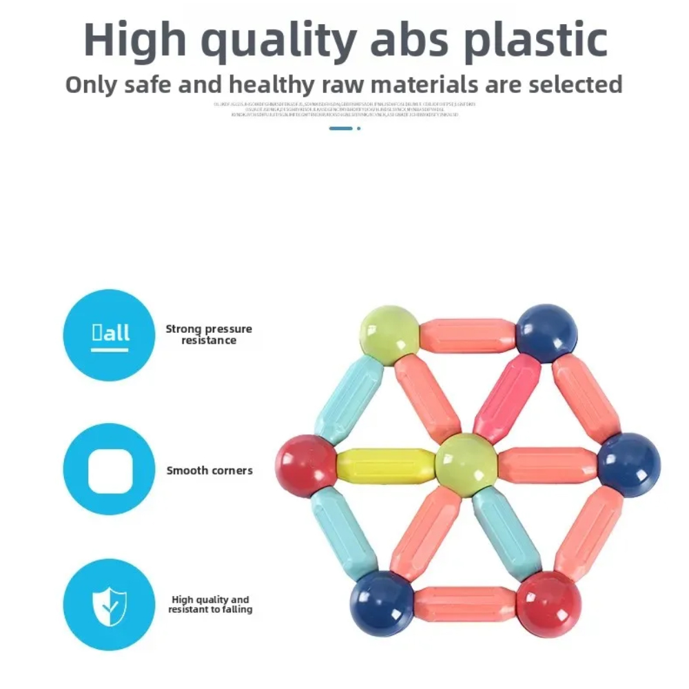 The 42pcs Magnetic Sticks set is a fun and educational STEM toy designed to inspire creativity, spatial thinking, and hands-on learning in children. This magnetic construction kit includes colorful rods with embedded magnets and steel ball connectors that easily snap together, allowing kids to build 2D shapes and 3D structures like cubes, pyramids, and geometric models. Perfect for developing fine motor skills and an early interest in science and engineering.