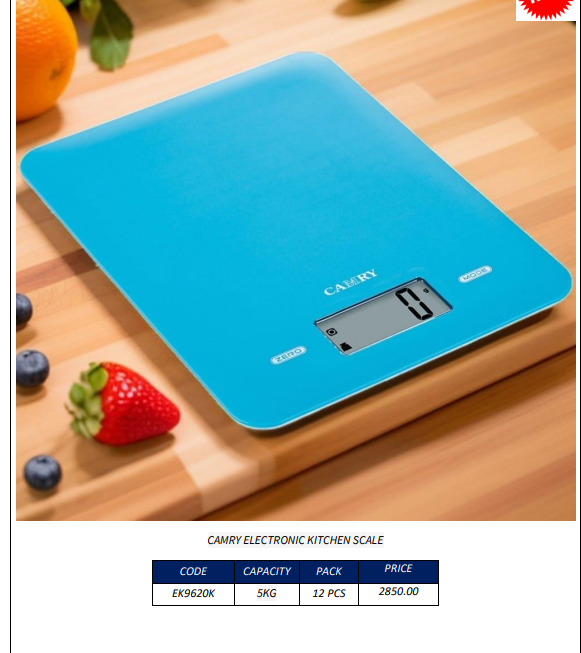 • 1 x Camry Electronic Kitchen Scale (EK9620K)