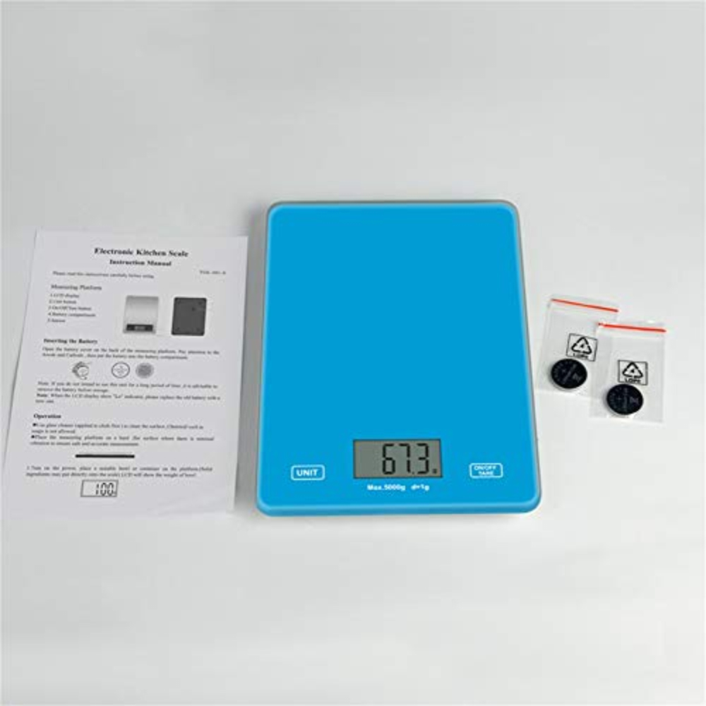 Place on a flat, hard surface for accurate readings. Avoid use on carpets or uneven surfaces. Do not expose to water or moisture—this is not a waterproof scale. Clean with a soft, dry or slightly damp cloth—do not immerse in water. Avoid placing heavy or sharp objects that may scratch the glass. Do not exceed the maximum weight limit (5kg). Replace batteries when display dims. Keep out of reach of children. For indoor use only. Not suitable for industrial or continuous heavy-duty use.