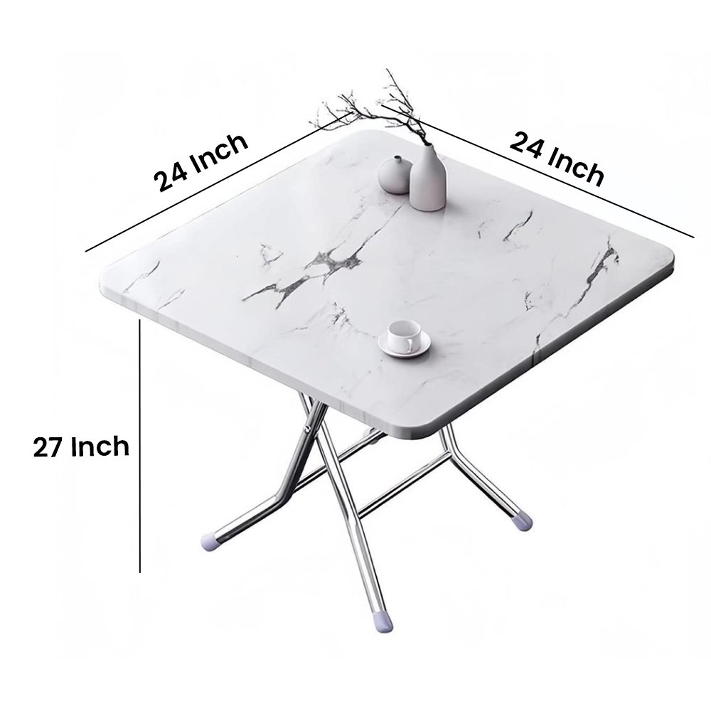 - Premium faux marble tabletop with realistic veining and glossy finish