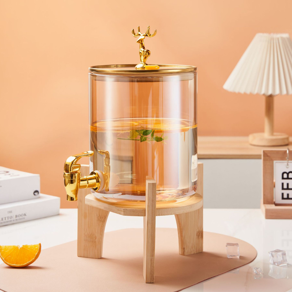 The Glass Beverage Juice Bucket 2.6L – Gold is an elegant and functional serving solution designed to elevate your dining, party, or event experience. Crafted from high-quality, clear tempered glass, this juice bucket features a stunning gold-tone metallic handle and base accents, adding a touch of luxury to any table setting. Perfect for serving fresh juices, cocktails, mocktails, sangria, iced tea, or infused water, it combines durability with sophisticated style—ideal for home use, restaurants, weddings, or special occasions.