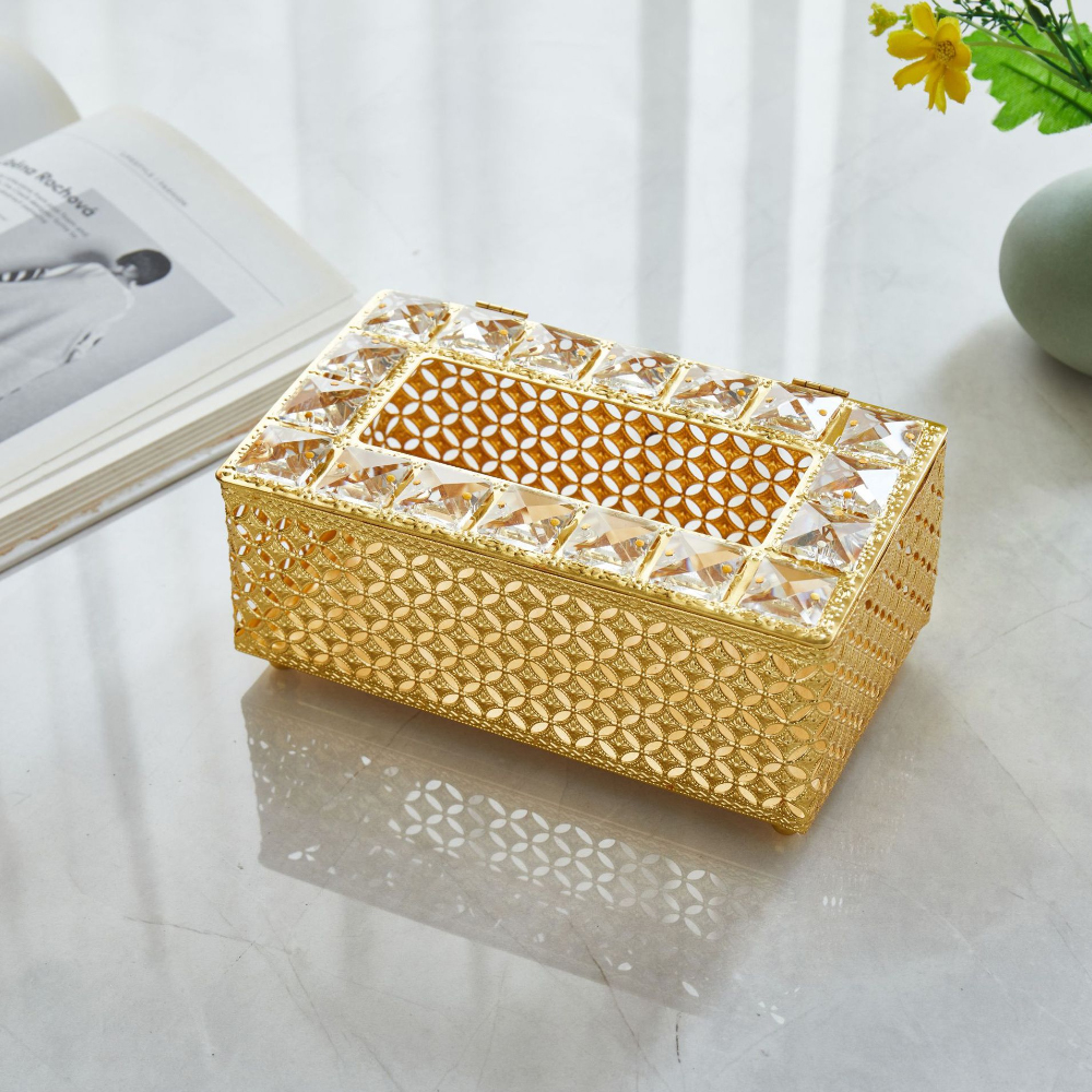 The Golden Tissue Box Holder is a luxurious and elegant accessory designed to elevate the look of any room while keeping tissues neatly organized. Crafted with a premium gold-finished metal frame and a sleek geometric or ornate design, this tissue box cover combines functionality with high-end décor. Perfect for living rooms, bedrooms, bathrooms, or office spaces, it turns an everyday essential into a stylish statement piece. Suitable for standard rectangular tissue boxes, it allows easy access while concealing the box for a clean, polished look.