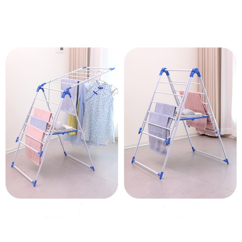 - X-shaped frame with 2 tiers of horizontal rods for maximum drying capacity
