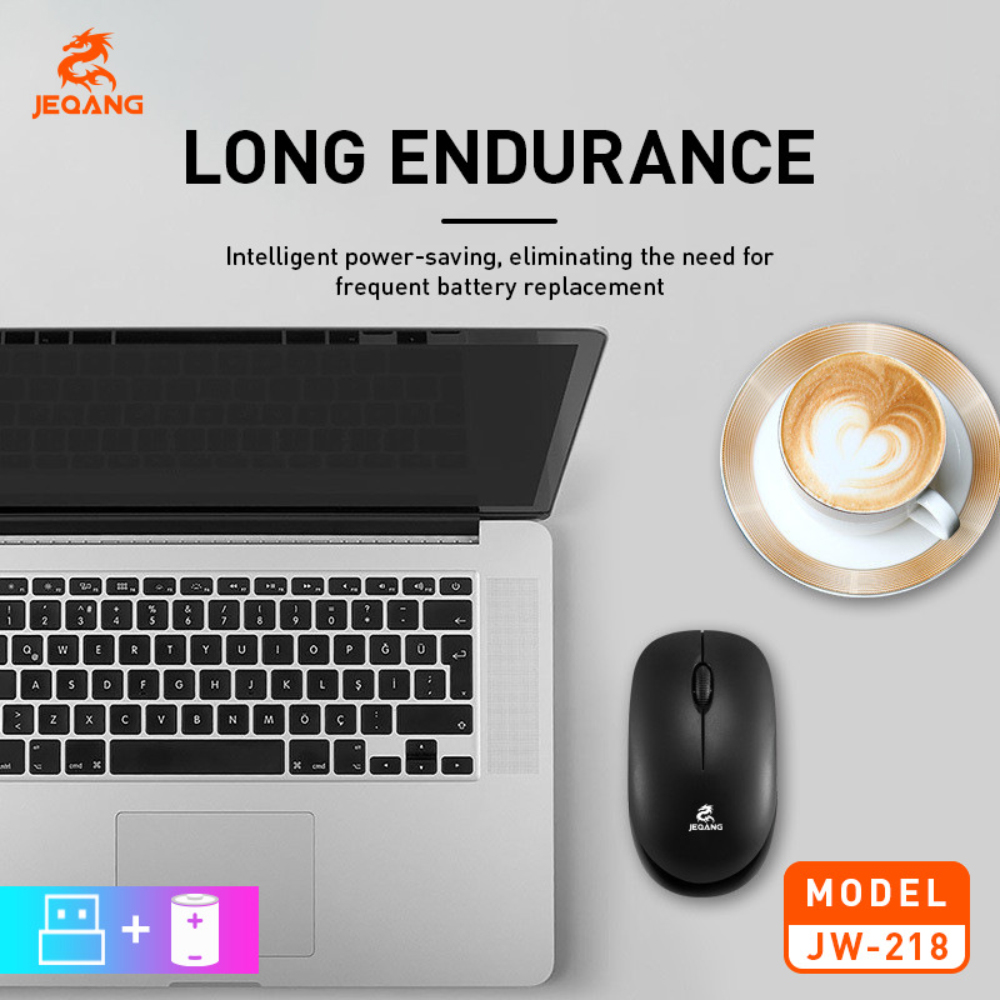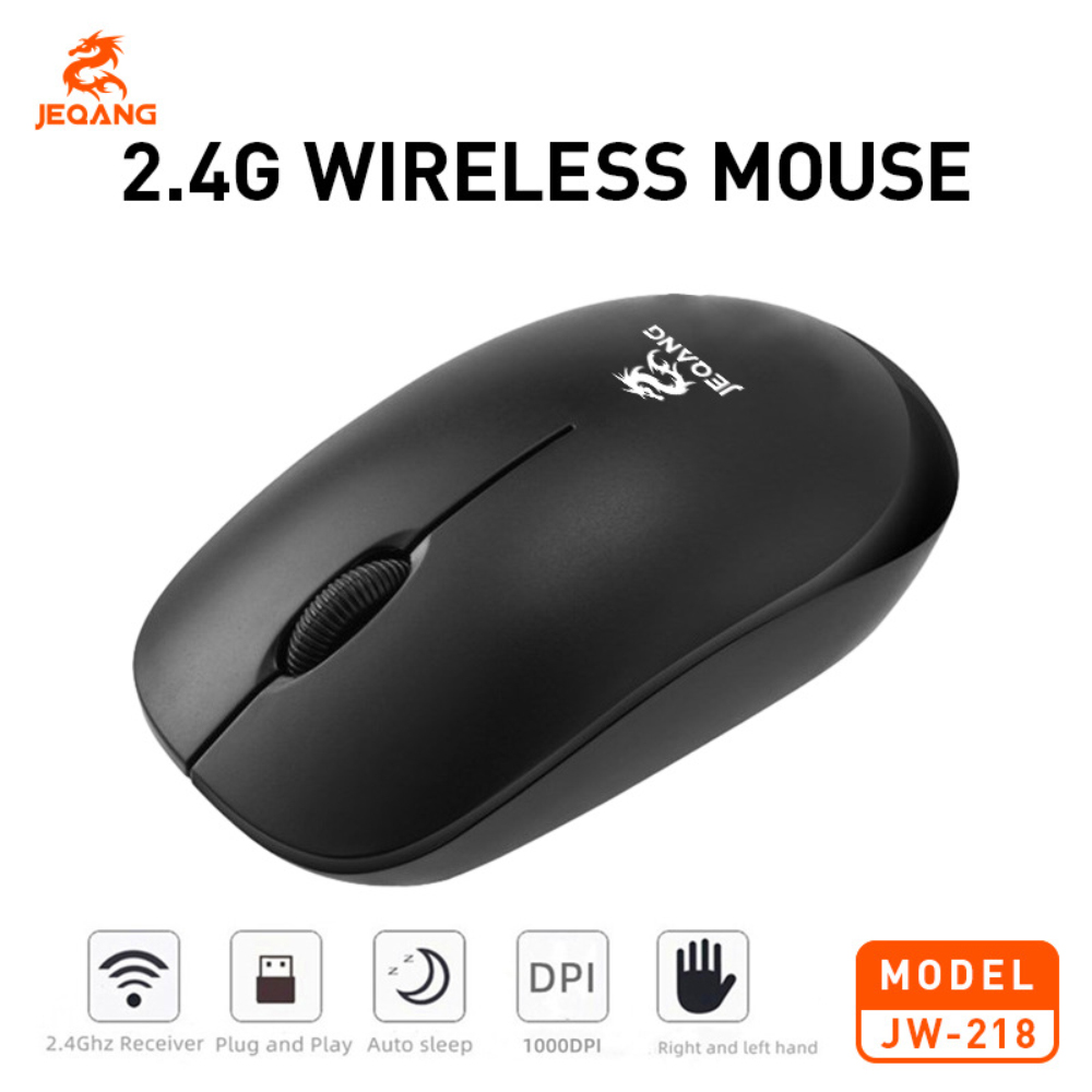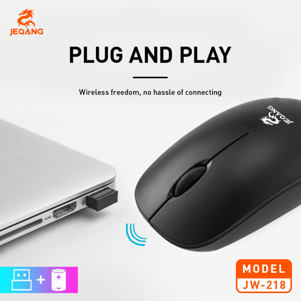 The Jeqang Wireless Mouse JW218 combines sleek design with reliable wireless performance for everyday computing needs. Featuring 2.4GHz wireless technology, this compact mouse delivers a stable, lag-free connection up to 10 meters, making it perfect for use with laptops, desktops, and tablets. Its ergonomic shape ensures comfortable handling, while the silent-click buttons reduce noise—ideal for quiet environments like offices, libraries, or home workspaces.
