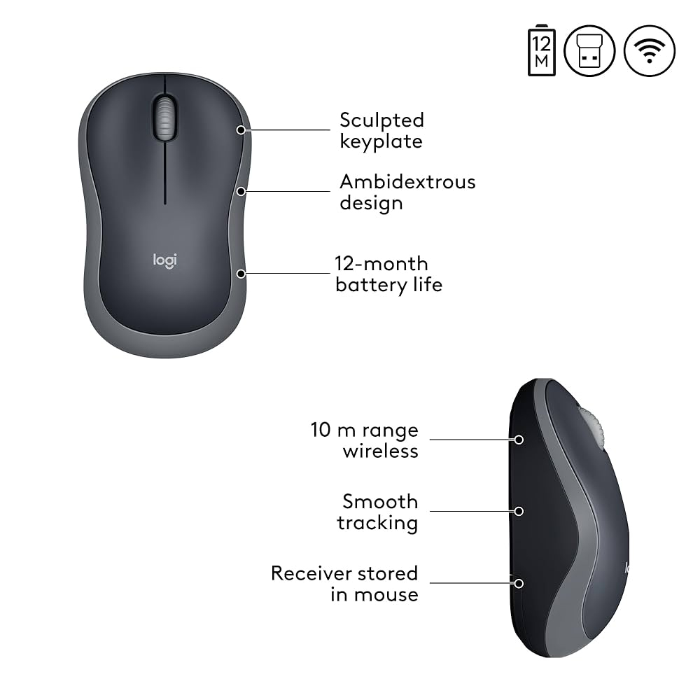Experience reliable wireless convenience with the Logitech Wireless Mouse M185. Designed for everyday comfort and performance, this compact mouse features 2.4GHz wireless connectivity that delivers a strong, lag-free connection up to 10 meters. Its ergonomic shape fits comfortably in either hand, making it ideal for use at home, in the office, or on the go. With plug-and-play simplicity and long battery life, the M185 is a dependable choice for seamless navigation.