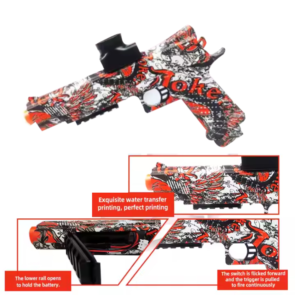 - Shoots eco-friendly gel balls (expand in water, burst harmlessly).
