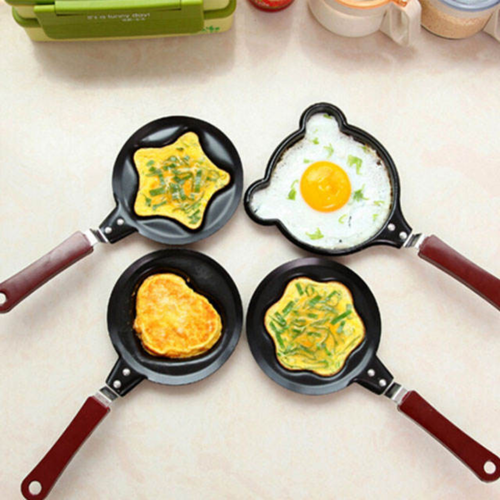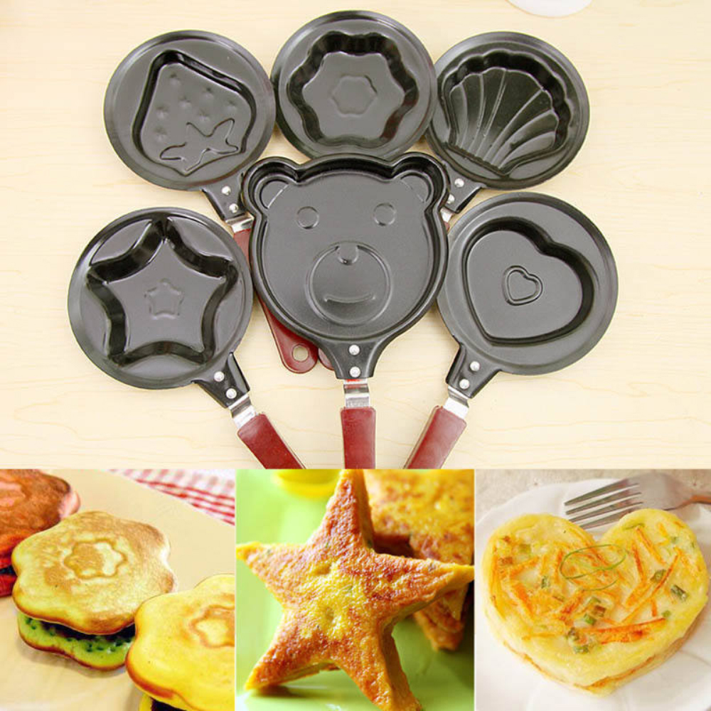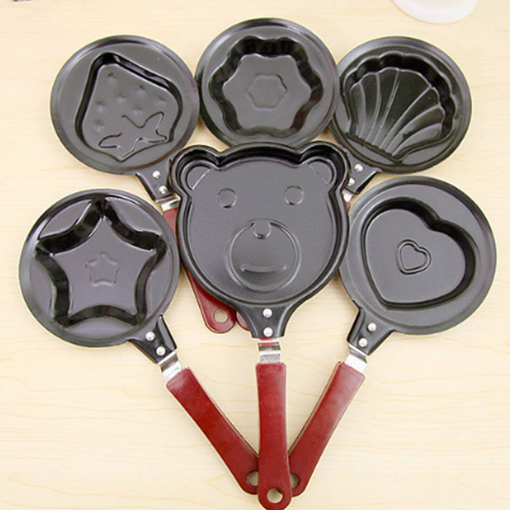 - Compact mini fry pan with mixed fun-shaped cavities (e.g., heart, star, circle, square)