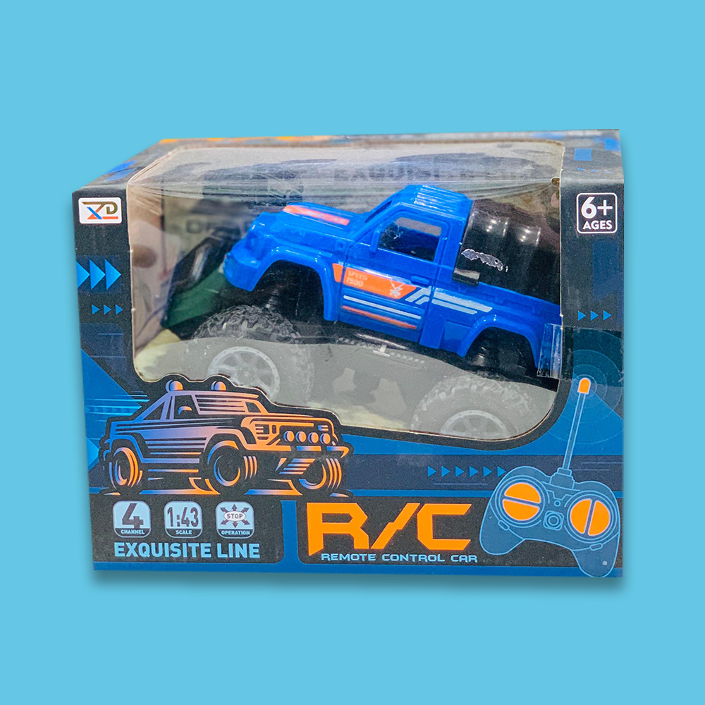 The Monster Truck RC Car is a high-performance, rugged remote-controlled vehicle designed for thrilling off-road adventures. Featuring a bold blue body with aggressive styling and oversized all-terrain tires, this 1:43 scale RC truck delivers powerful performance and durable construction. With its 4-channel remote control and 2.4GHz frequency, it offers responsive steering, forward/reverse motion, and stunts like jumps and spins—perfect for kids and RC enthusiasts who love action-packed play.