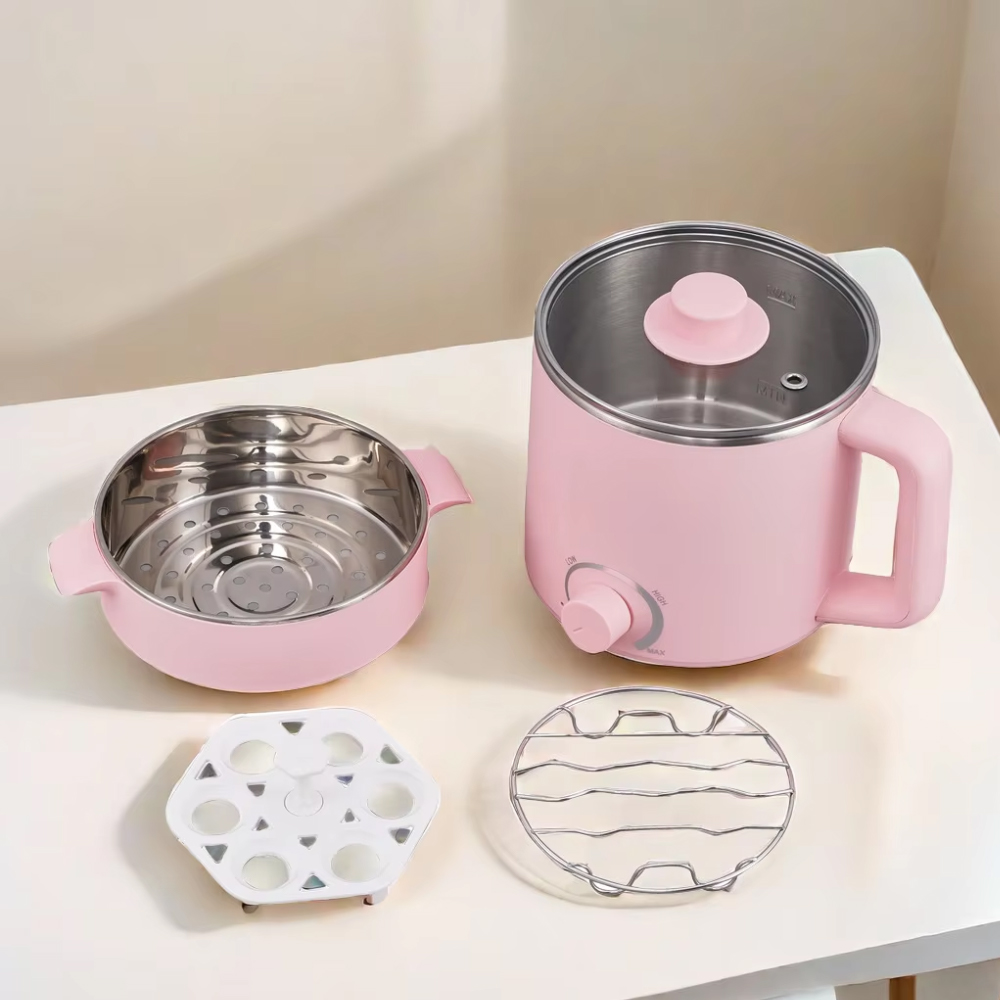 This is not a pressure cooker – it functions as a basic electric cooking pot with boiling and simmering capabilities. Always add water or liquid before switching on to avoid dry heating. Do not immerse the base in water – clean only with a damp cloth. Not suitable for frying or baking. The non-stick pot should be cleaned gently with a soft sponge. Ideal for dorms, small kitchens, offices, or as a secondary cooker. A smart, compact solution for quick, healthy meals with minimal effort.