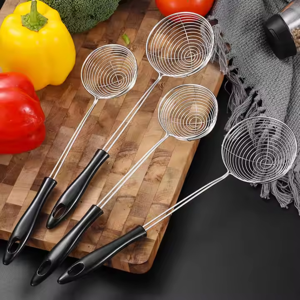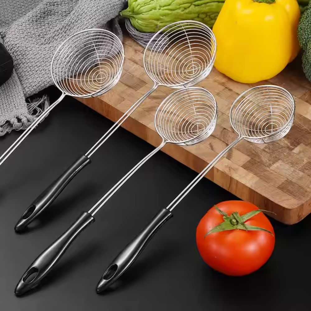 • Material: 304 Stainless Steel (mesh), PP or Silicone-Coated Handle