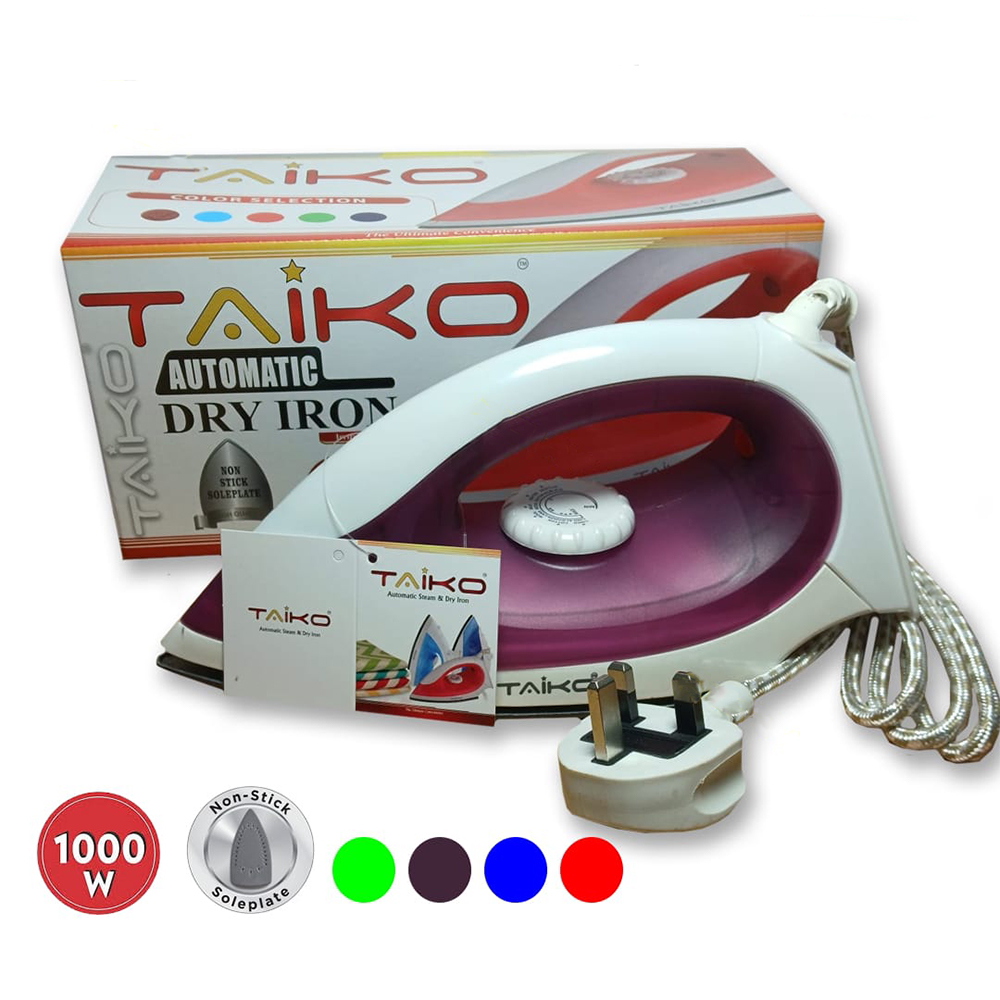 Simplify your ironing routine with the Taiko Camry Automatic Dry Iron – a lightweight, user-friendly dry iron designed for quick and efficient wrinkle removal. Ideal for delicate fabrics and everyday use, this iron delivers consistent heat without the need for water or steam, reducing the risk of water spots or fabric damage. With an automatic shut-off feature, smooth non-stick soleplate, and ergonomic design, the Camry is perfect for travel, small loads, or quick touch-ups.