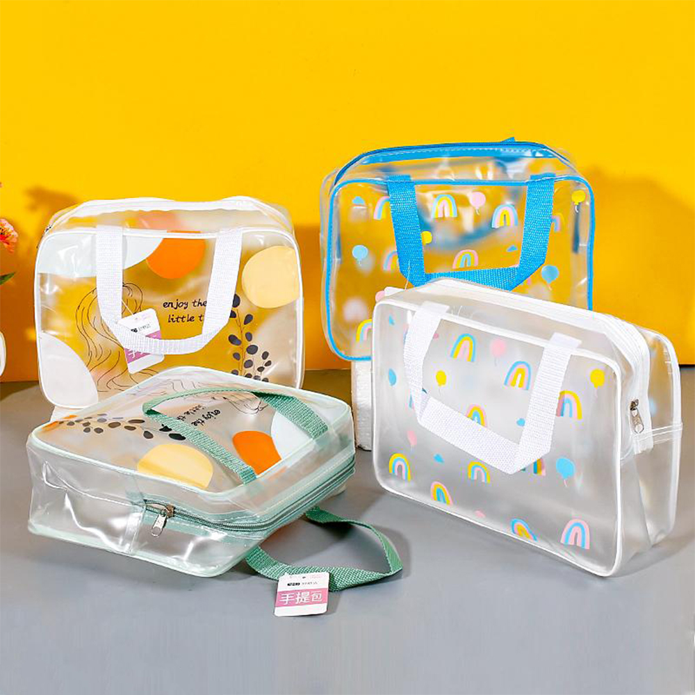 - Color: Clear (may have black or silver zipper)