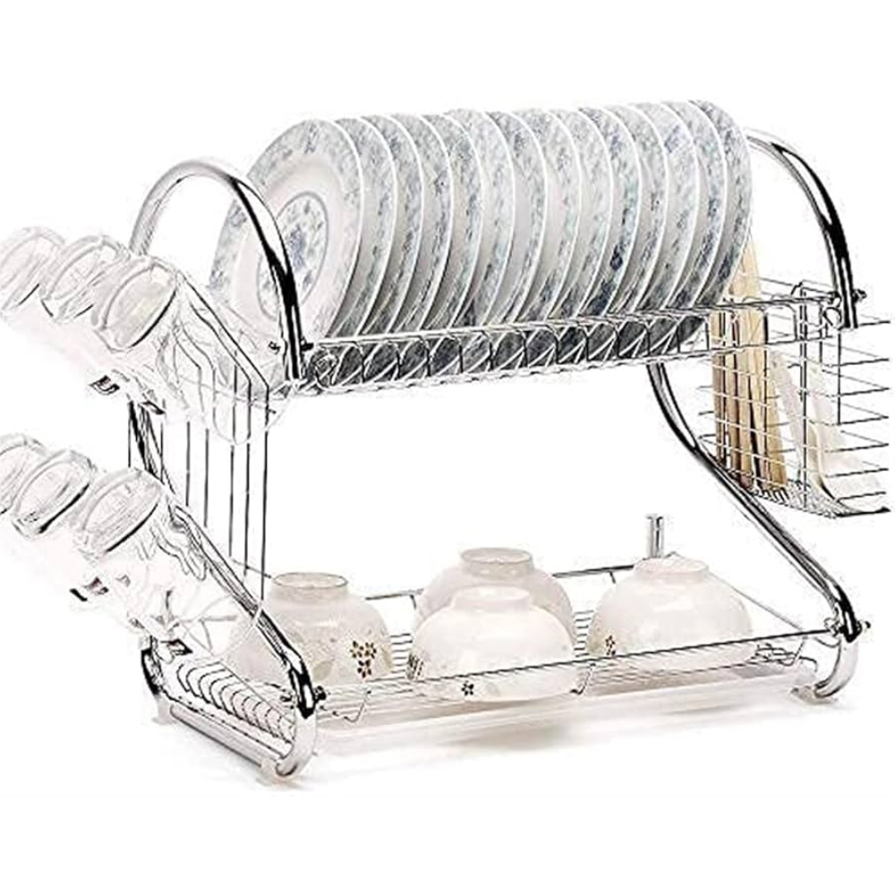 The 2 Layer 42cm Dish Rack is a compact and efficient kitchen organizer designed to dry and store dishes, utensils, and kitchen essentials after washing. With a dual-tier design, it maximizes space by separating plates, bowls, cups, and cutlery on two levels, promoting faster drying and better organization. Crafted from rust-resistant stainless steel and food-safe PP plastic, this durable dish rack ensures long-lasting performance and hygiene in any kitchen.